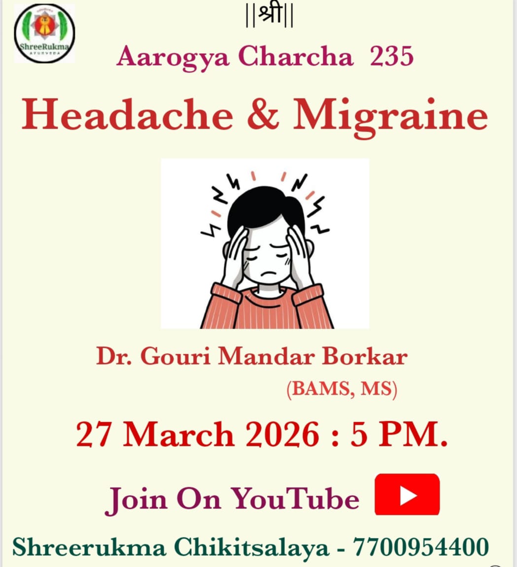 आरोग्यविषयक कोणत्याही तक्रारी असल्यास पुणे येथील श्रीरुक्म चिकित्सालय आणि पंचकर्म केंद्रास अवश्य भेट दया .